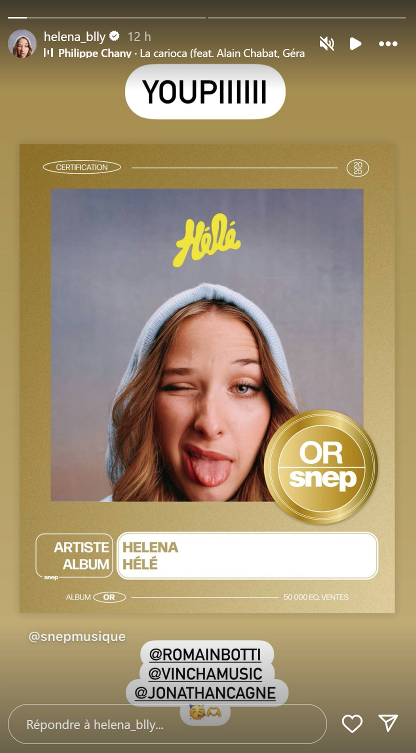 "Je suis trop contente, les retours sont hyper positifs et je pouvais pas m'attendre à mieux pour un premier album. [...] Je me suis tellement livrée et ça a été reçu à merveille. Donc je suis vraiment très ravie" - Héléna