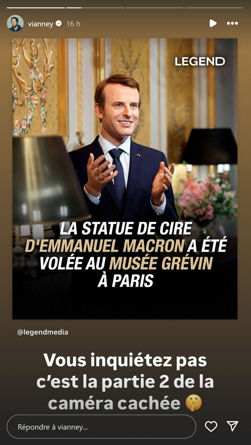 Mais aujourd'hui, retournement de situation : Vianney est de nouveau au cœur de l'actualité du Musée Grévin, mais cette fois-ci pour une blague beaucoup moins drôle concernant une autre statue de cire : celle de l'actuel président Emmanuel Macron.
