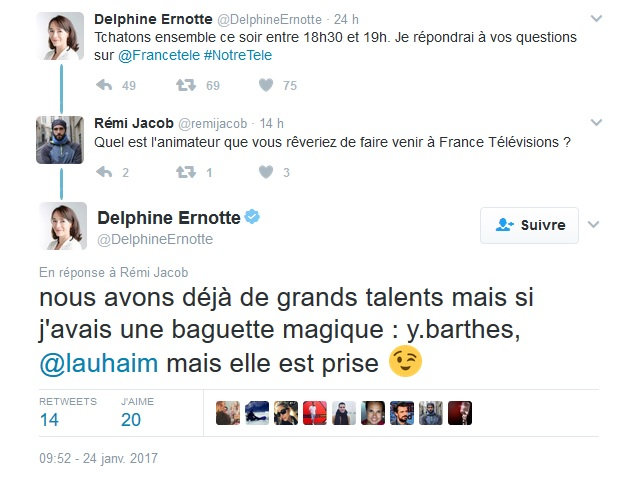 Hier soir la présidente de France Télévisions, Delphine Ernotte, s’est prêtée au jeu des questions/réponses sur Twitter.