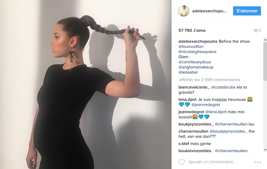 En effet au vu de son ventre, sa grossesse n'est pas toute récente. Cheveux tressés et moulée dans une petite robe noire, l'actrice a pris la pose de profil pour mieux mettre en valeur ses jolies rondeurs. Elle a ensuite affiché son baby bump au défilé Louis Vuitton devant les photographes.