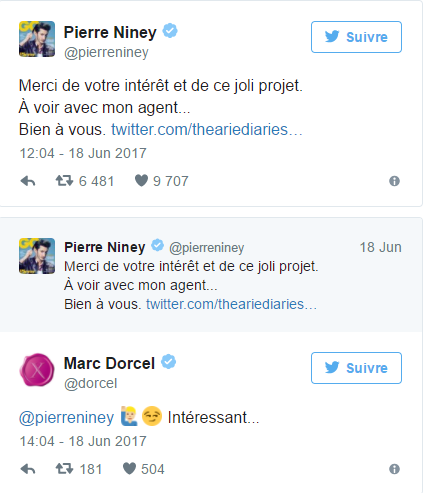 Cette pirouette a été retweeté plus de 6000 fois et aimé plus de 9000 fois par les internautes. Cerise sur le gâteau la société française de films pornographiques Marc Dorcel a aussi profité du tweet de l’acteur pour tout simplement écrire « Intéressant ».