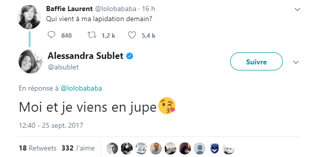 De nombreuses réactions ont été relevées sur le net. Certains critiquent le manque de liberté à la télévision, comme Alessandra Sublet qui répond à Laurent Baffie avec un : « Moi et je viens en jupe. »