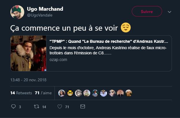 Si certains fans du programme disent adorer les sketchs d’Andreas Kastrinos, d'autres, en revanche, l'accusent de plagier une pastille présentée à l'époque dans Le Petit Journal par Ugo Marchand qui portait justement sur Mireille Mathieu. L’ex-chroniqueur du Petit Journal a lui-même réagi sur Twitter : "Ça commence un peu à se voir".