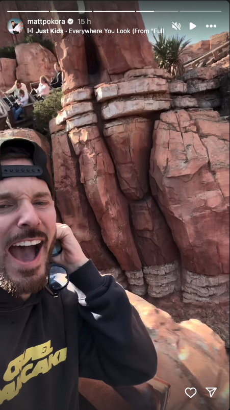 Puis, place aux sensations fortes avec un tour dans le Big Thunder Mountain, où le chanteur a plaisanté sur le risque de perdre son téléphone en pleine attraction.